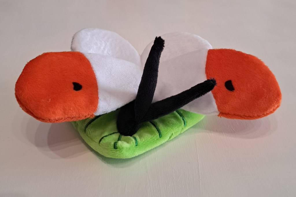 Als aanschouwelijk materiaal is een vlinder in zachte pluche verkrijgbaar. Deze kan gebruikt worden om het vertellen te ondersteunen en het kind mee te nemen in het verhaal.