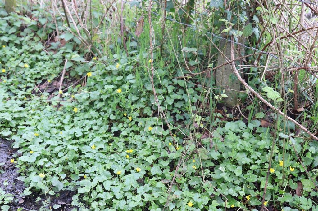 ‘April 2022. Een wandeling met de hond langs de aardeweggetjes en loswegen in Lede, genietend van de pracht van het bloeiende speenkruid in de geelstervallei.